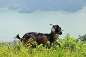 急な傾斜を走り回る山羊や