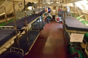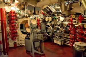 続いて潜水艦の後半部分に進みます。潜水艦なので、隣の部屋に移動するには丸いハッチの部分を通ることになります。一応ステップが付いていますが、体をかがめないとくぐれないので、動きやすい格好で訪れたほうが良いかもしれません。
