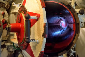 寝室の奥には魚雷を発射する装置が4つあります。ここに先ほどの魚雷を設置して発射するようです。この潜水艦があくまでも兵器であるということを改めて実感させられます。