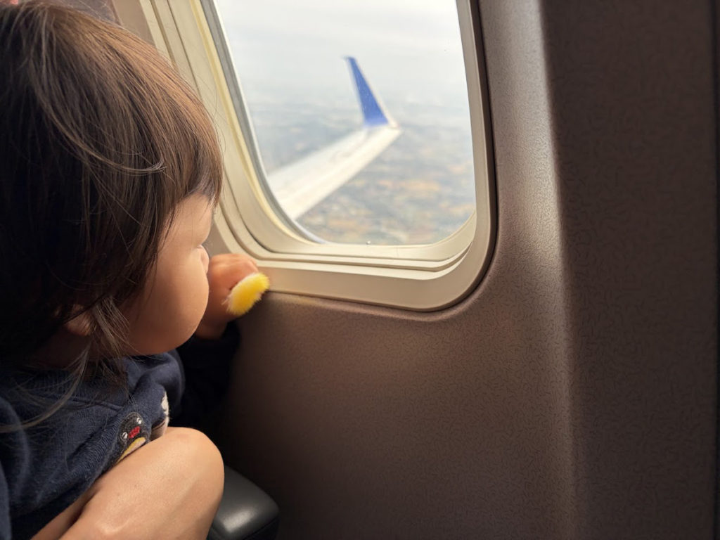 2歳未満は座席の購入が不要なので、基本的に大人の膝の上で過ごします。