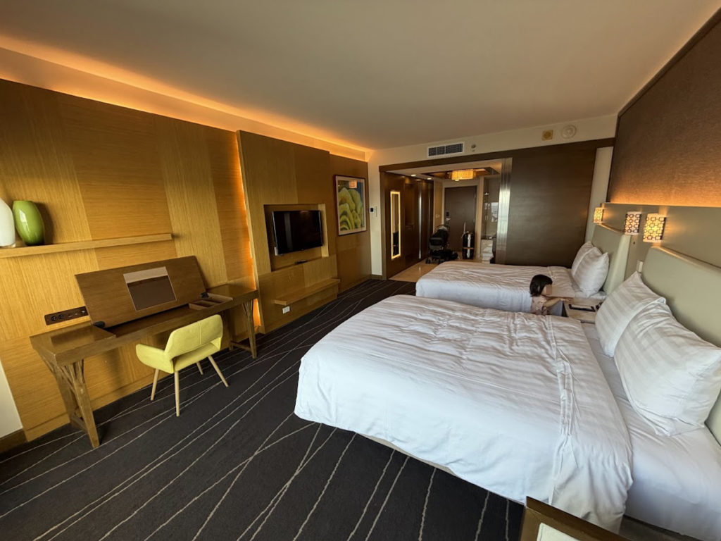 今回はオーシャンフロントの部屋に宿泊したので、朝起きてブラインドをあげると、美しい海が飛び込んできます。