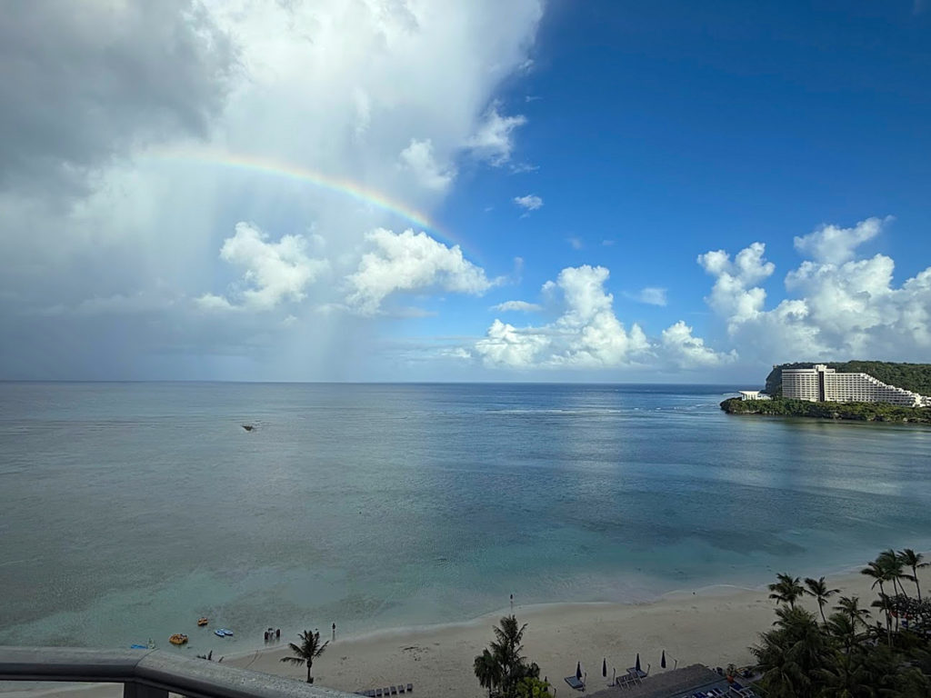 ベランダに出て朝の空気に触れます。さすがは南国グアム、朝からものすごい湿度で、Goproで撮影しようとするとレンズが曇ってしまって真っ白です。
