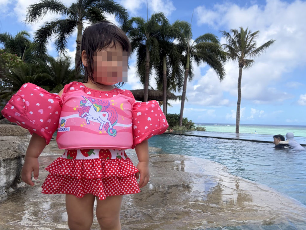 子供の水着は元々持っているものを持参しましたが、肩につける浮き輪を日本で購入して持っていきました。